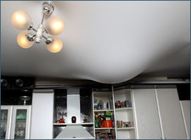 Натяжные потолки выдерживают до 100 литров воды на квадратный метр. После того, как натяжной потолок соберет в себе воду, ее можно будет аккуратно слить и потолок примет свой прежний вид.