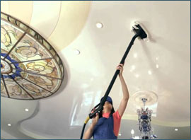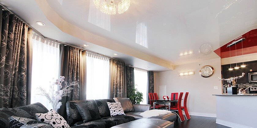 Потолки легко держать в чистоте, достаточно протереть их влажной тряпкой и потолок будет сиять как новый.