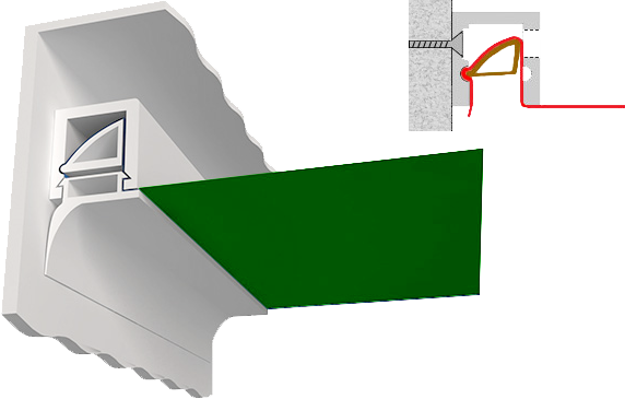 Также как и в "ОПТИМА", в данном варианте используется гарпунная система установки. Единственная разница в том, что в данном варианте используется крашенный алюминиевый профиль, имеющий дополнительный слой защиты от внешних факторов.