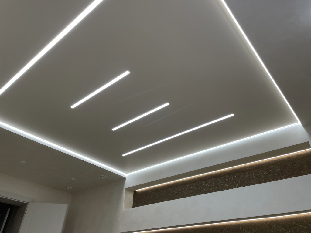 Любой дизайн и конструкция (обход люстры, трубы, дополнительных углов)